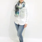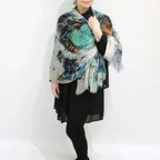 大判サイズのストールで肩から羽織る使い方もできます。春夏の日除けや室内の冷房対策としても使いやすくなっています。