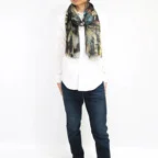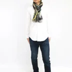 大判サイズのストールで肩から羽織る使い方もできます。春夏の日除けや室内の冷房対策としても使いやすくなっています。
