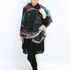 大判サイズのストールで肩から羽織る使い方もできます。春夏の日除けや室内の冷房対策としても使いやすくなっています。