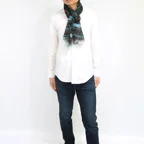 大判サイズのストールで肩から羽織る使い方もできます。春夏の日除けや室内の冷房対策としても使いやすくなっています。