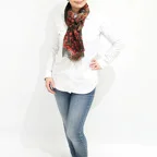 大判サイズのストールで肩から羽織る使い方もできます。春夏の日除けや室内の冷房対策としても使いやすくなっています。