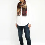 大判サイズのストールで肩から羽織る使い方もできます。春夏の日除けや室内の冷房対策としても使いやすくなっています。