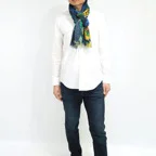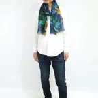 大判サイズのストールで肩から羽織る使い方もできます。春夏の日除けや室内の冷房対策としても使いやすくなっています。