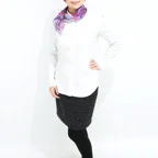 65cm×65cmの小判スカーフで、アスコットタイのようにシャツやブラウスの中におさめて使うこともできます。室内でも巻いたままでいられるので使いやすくなっています。