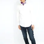 65cm×65cmの小判スカーフで、アスコットタイのようにシャツやブラウスの中におさめて使うこともできます。室内でも巻いたままでいられるので使いやすくなっています。