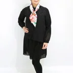 65cm×65cmの小判スカーフで、アスコットタイのようにシャツやブラウスの中におさめて使うこともできます。室内でも巻いたままでいられるので使いやすくなっています。