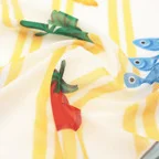 大人の遊び心をくすぐるポップなデザイン。細番手の糸を丁寧に織り上げた、ふんわりエアリーな柔らかさと共にお楽しみください♪