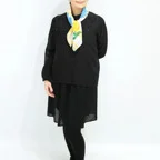 65cm×65cmの小判スカーフで、アスコットタイのようにシャツやブラウスの中におさめて使うこともできます。室内でも巻いたままでいられるので使いやすくなっています。
