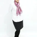 さらにアクセントとしてならカジュアルな装いにも合わせやすい、とても使い勝手の良いストールです。