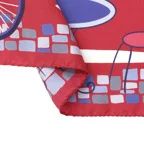 50cm×50cmの正方形サイズで小さくまとります。折りたためばサッとバッグに入れて持ち運べます。外出先でも邪魔になることはありません。また、身につけるだけでなく、手持ちのバッグにキュッと結べるアクセサリーとしても重宝します。