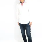 小ぶりなスクエアサイズで、アスコットタイのようにシャツやブラウスの中におさめて使うことができます。室内でも巻いたままでいられるので取り外しする必要もありません。