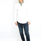 小ぶりなスクエアサイズで、アスコットタイのようにシャツやブラウスの中におさめて使うことができます。室内でも巻いたままでいられるので取り外しする必要もありません。