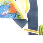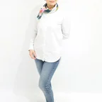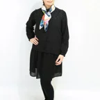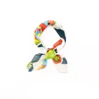 65cm×65cmの小判スカーフで、アスコットタイのようにシャツやブラウスの中におさめて使うこともできます。室内でも巻いたままでいられるので使いやすくなっています。