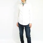 65cm×65cmの小判スカーフで、アスコットタイのようにシャツやブラウスの中におさめて使うこともできます。室内でも巻いたままでいられるので使いやすくなっています。