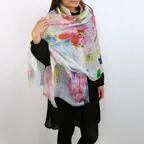 春夏にぜひおすすめしたい、さらさら肌ざわりが魅力のストール。多色使いなので様々な装いに合わせやすく、アレンジのしやすさも魅力です。