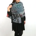 非常に大きなショールサイズで、広げて羽織れば上半身をすっぽりと覆うことができます。縦横の長さも十分にあるため、巻き方の自由度が広がります。程よいボリューム感と立体感を簡単につくることができるため、一巻きでこなれた印象になります。面積もあるので、真夏の室内での冷房対策や膝掛けとしても使いやすくなっています。