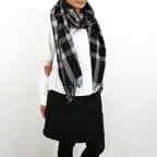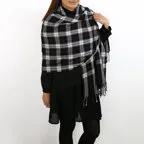 スタンダードな大判サイズで、首に巻くことはもちろん、室内でのひざ掛けにも、肩から羽織る使い方もできます。特に羽織りは、パッと華やかにエレガントな雰囲気に変わります。上半身を覆えるので、着ている服を気にせず合わせることができます。忙しい朝もコーディネートを気にする必要はありません。