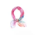 小ぶりなスクエアサイズで、アスコットタイのようにシャツやブラウスの中におさめて使うこともできます。室内でも巻いたままでいられるので使いやすくなっています。