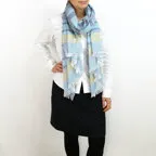 大判ショールサイズで肩から羽織る使い方にも適しています。ゆるっと巻くだけで立体感を作りやすく、ほどよいボリュームも出すことができます。春夏の日除けや冷房対策としても使いやすく、ファッションのアクセントとしてなら一年中使うことができます。