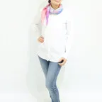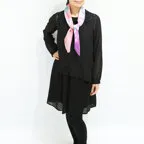 小ぶりなスクエアサイズで、アスコットタイのようにシャツやブラウスの中におさめて使うこともできます。室内でも巻いたままでいられるので使いやすくなっています。