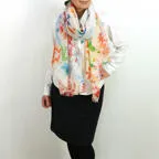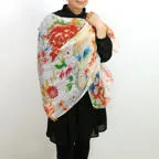 大判サイズのストールで肩から羽織る使い方もできます。春夏の日除けや室内の冷房対策としても使いやすくなっています。