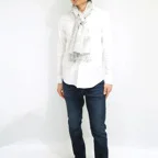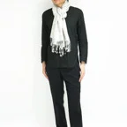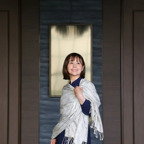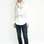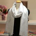 スタンダートな大判サイズで巻いても羽織っても、どちらも使いやすいタイプです。特に羽織は全体の印象がパッと華やかに、エレガントな雰囲気に変化します。
