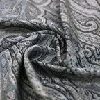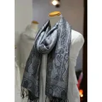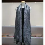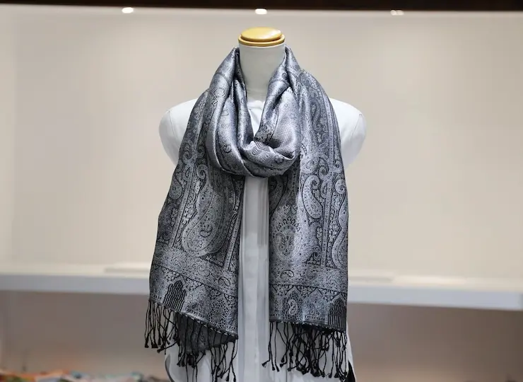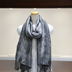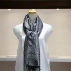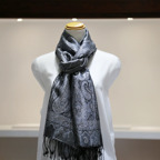 シルク100%のブラック&シルバーグレイの色糸で織り込まれた美しい色使い。合わせやすさとアクセント効果のバランスも絶妙でシックかつ上品な印象になります。