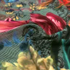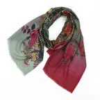 シックな花柄が効いた高級感あふれるデザイン。落ち着いたトーンで着まわしやすいアクセントストールです。