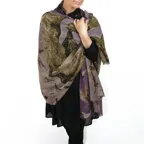 非常に大きなショールサイズで、広げて羽織れば上半身をすっぽりと覆うことができます。縦横の長さも十分にあるため、巻き方の自由度が広がります。程よいボリューム感と立体感を簡単につくることができるため、一巻きでこなれた印象になります。面積もあるので、真夏の室内での冷房対策や膝掛けとしても使いやすくなっています。