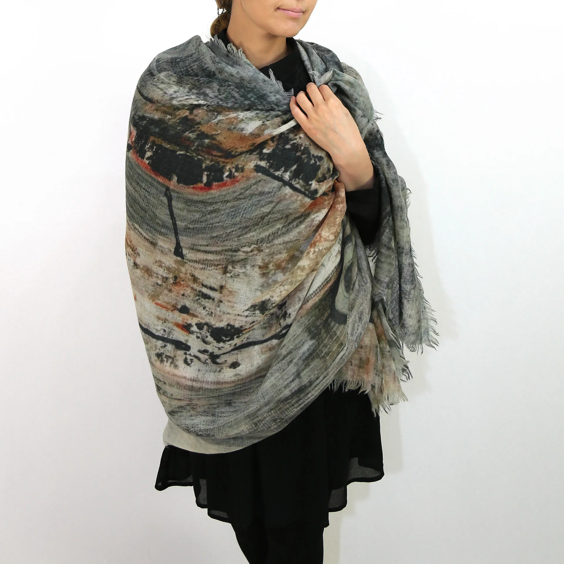 モダンアートのような色彩がお洒落。ゆるりと巻くだけで抜群の存在感を与えてくれます!