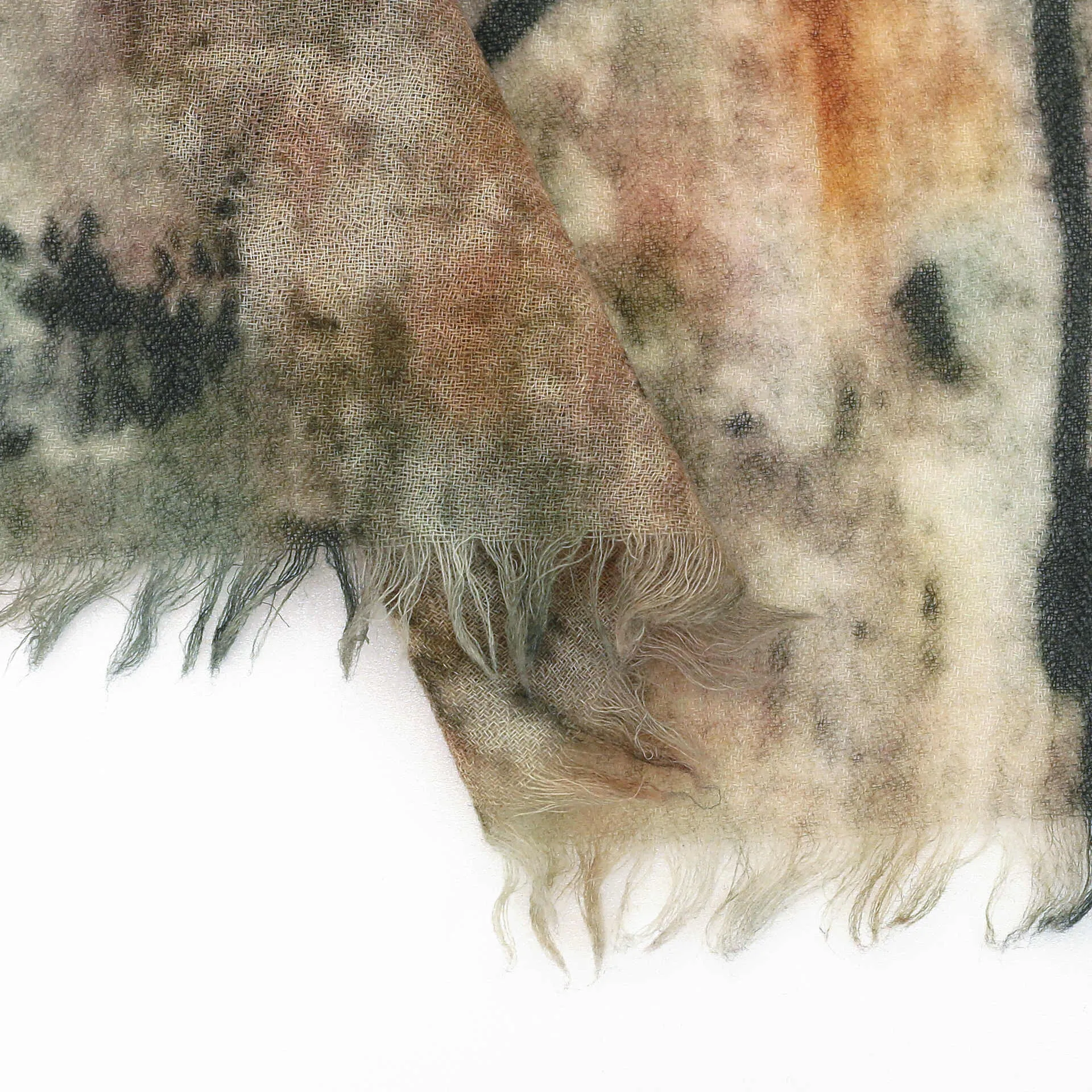 大判の長方形で、端面はナチュラルな断ち切り加工を施しています。どんな巻き方をしても表情豊かでお洒落な印象になります。また、折りたたんで使えばスッキリとシャープなシルエットになります。