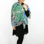 スタンダードな大判サイズで巻きでも羽織でもどちらでも使いやすくなっています。特に春夏の日除けや冷房対策としても使いやすく、ファッションのアクセントとしてなら一年中使うことができます。