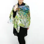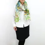 大判サイズのストールで肩から羽織る使い方もできます。春夏の日除けや室内の冷房対策としても使いやすくなっています。