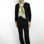 大判サイズのストールで肩から羽織る使い方もできます。春夏の日除けや室内の冷房対策としても使いやすくなっています。