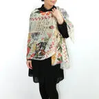 大判サイズのストールで肩から羽織る使い方もできます。春夏の日除けや室内の冷房対策としても使いやすくなっています。