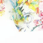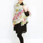 愛らしいカラフルな小花が咲き誇る、デザインで魅せるウールシルクストール。薄くて軽くてやわらかい質感も魅力です!
