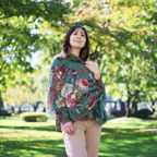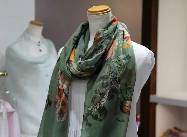 このストールは薄くて軽い生地です。使わないときは小さく折りたたみ、バッグに収納できます。外出先でも邪魔にならず、持ち運びにも便利です。