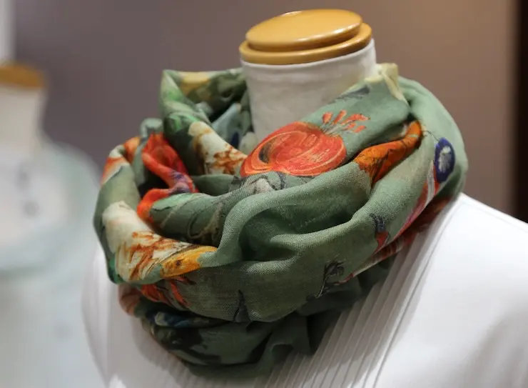 薄手の生地としなやかな風合いでボリュームを抑えてシャープに身につけることができます。複雑な巻き方でも取り回ししやすく、さまざまな巻き方でおしゃれを楽しめます。