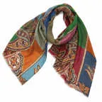 小粋な配色のカラーのペイズリーストール。巻き方によって様々な表情が楽しめます!