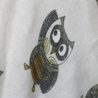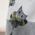 コミカルなフクロウが描かれたプリントストール。遊び心あるデザインでシンプルなお洋服が生まれ変わります!