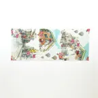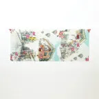 一点投入で目をみはる着映え力。建物柄が印象的なストール。薄手の素材と爽やかな色使いで季節を問わず重宝します!