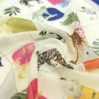 たくさんの動物が描かれたポップなデザイン。巻くたびに好きになる、遊び心ある一枚です。
