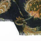 非常に大きなショールサイズで、広げて羽織れば上半身をすっぽりと覆うことができます。縦横の長さも十分にあるため、巻き方の自由度が広がります。程よいボリューム感と立体感を簡単につくることができるため、一巻きでこなれた印象になります。面積もあるので、真夏の室内での冷房対策や膝掛けとしても使いやすくなっています。