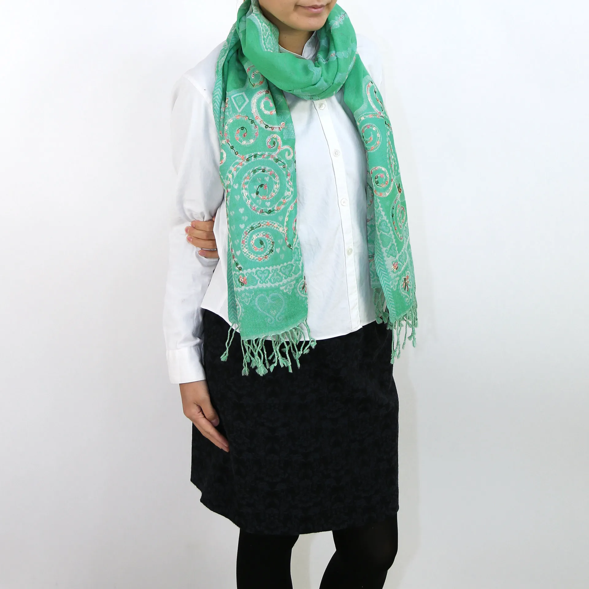 ランチ会やショッピング、トラベルにも。いつでも心地よく、素敵でいられる。上品な刺繍ストール。透け感のある軽やかな生地感で巻きでも羽織でも使いやすくなっています!