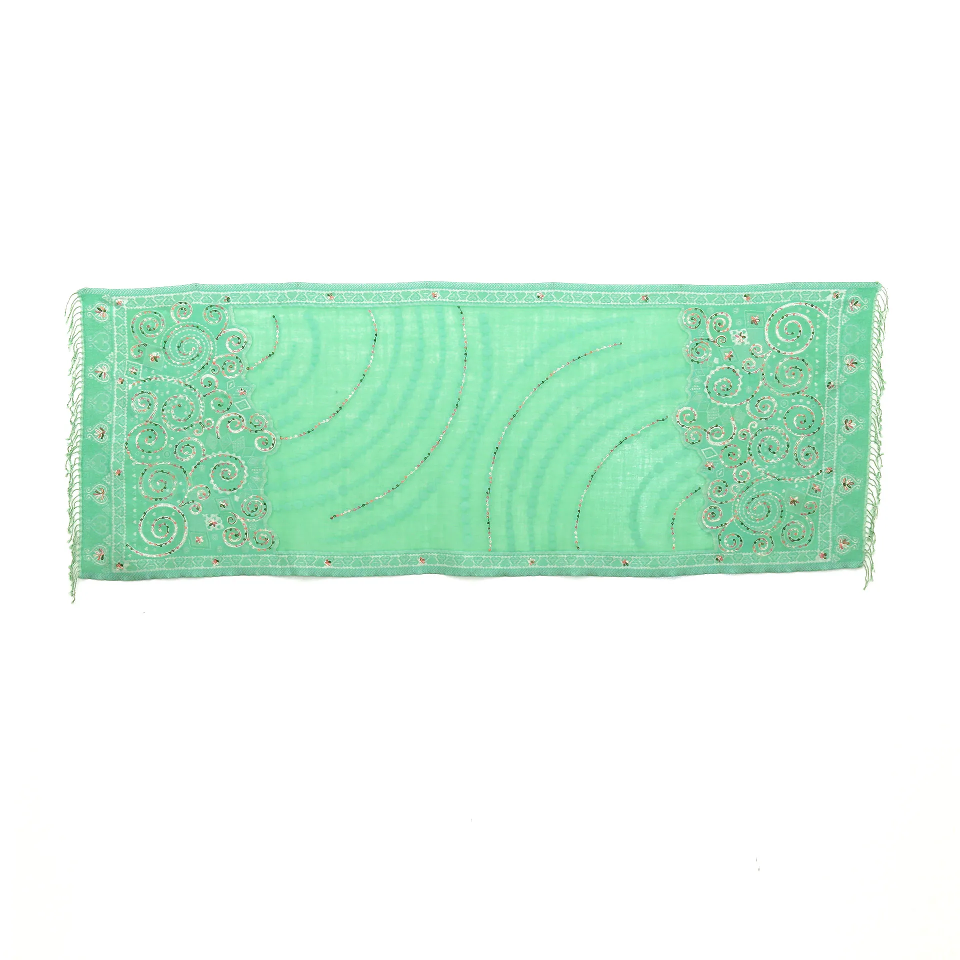 透け感のある生地に施された品の良い刺繍が美しく、装いのアクセントに最適です。カジュアルな普段使いにも、フォーマルな場面でも使いやすいタイプです。スタイルや場所を問わず合わせることができます。