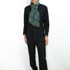 アシンメトリーの独創的なデザイン。ゆるっと巻いていただくことはもちろん、複雑な巻き方でも表情が変わりやすいお洒落なストールです。
