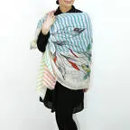 大判サイズのストールで肩から羽織る使い方もできます。春夏の日除けや室内の冷房対策としても使いやすくなっています。