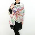 大判サイズのストールで肩から羽織る使い方もできます。春夏の日除けや室内の冷房対策としても使いやすくなっています。
