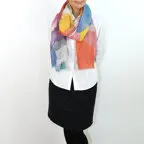 自然な風合いが魅力的なリネンで、お洒落なストールを作りました。ブロックパネル調のカラフルなデザインでアクセントに最適です!