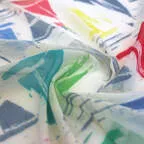 空気のように軽い涼しげコットンをカラフルなお洒落なデザインに仕上げた一枚。夏春夏の着こなしに、モダンなスパイスを加えます。